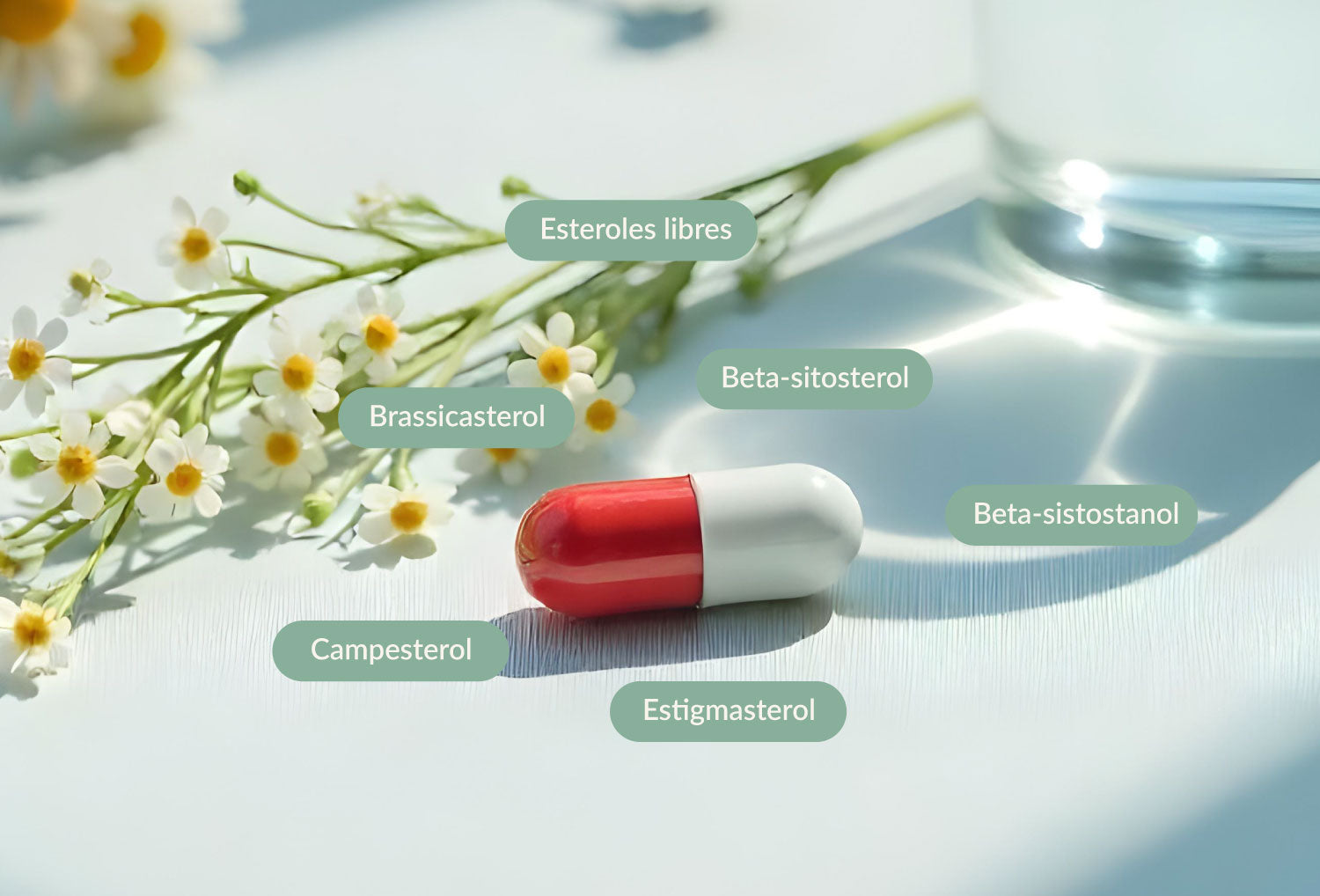 Ingredientes: Beta-sitosterol, Campesterol, Estigmasterol, Brassicasterol, Otros Esteroles, Beta-sistostanol, Esteroles libres.